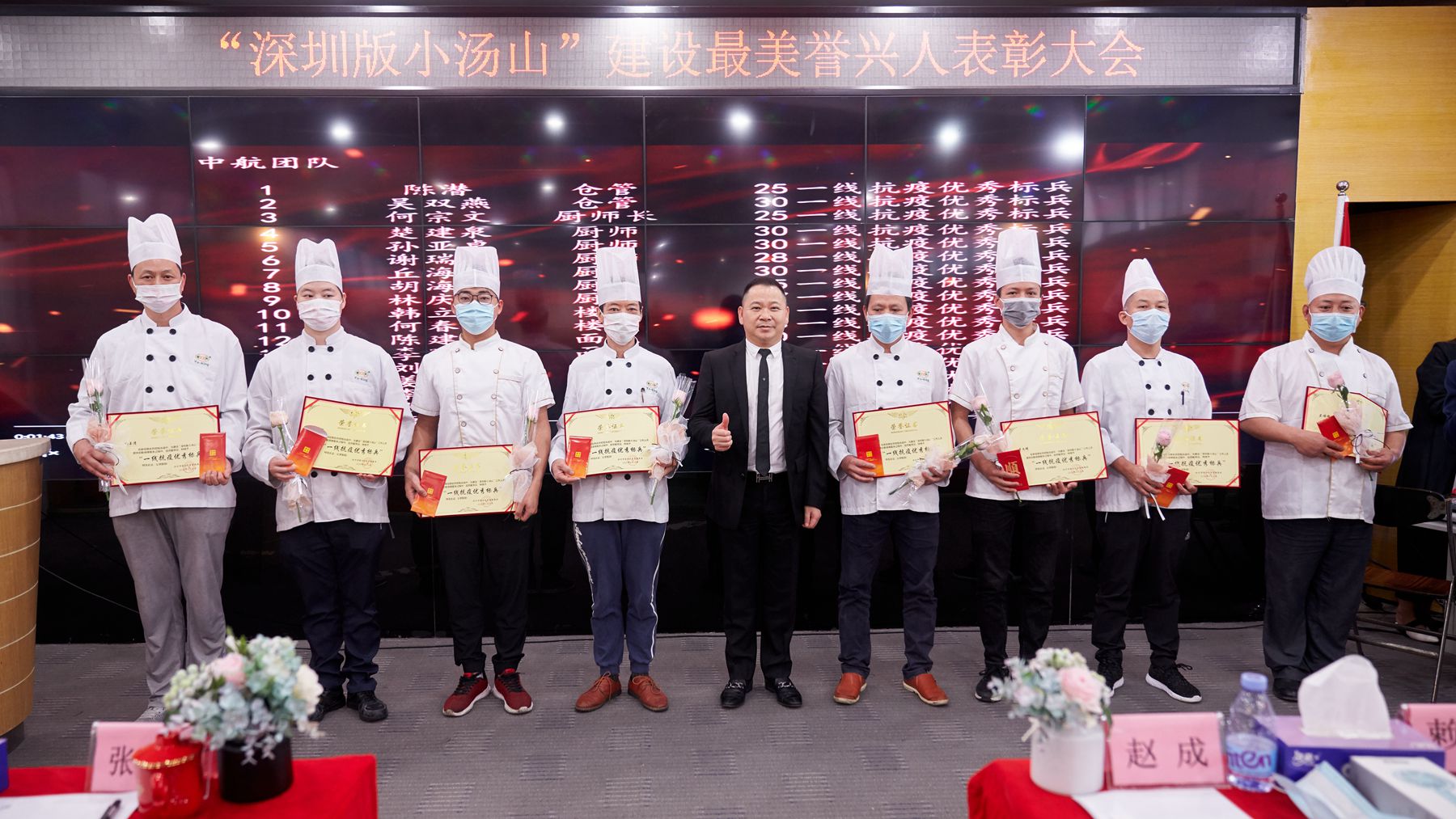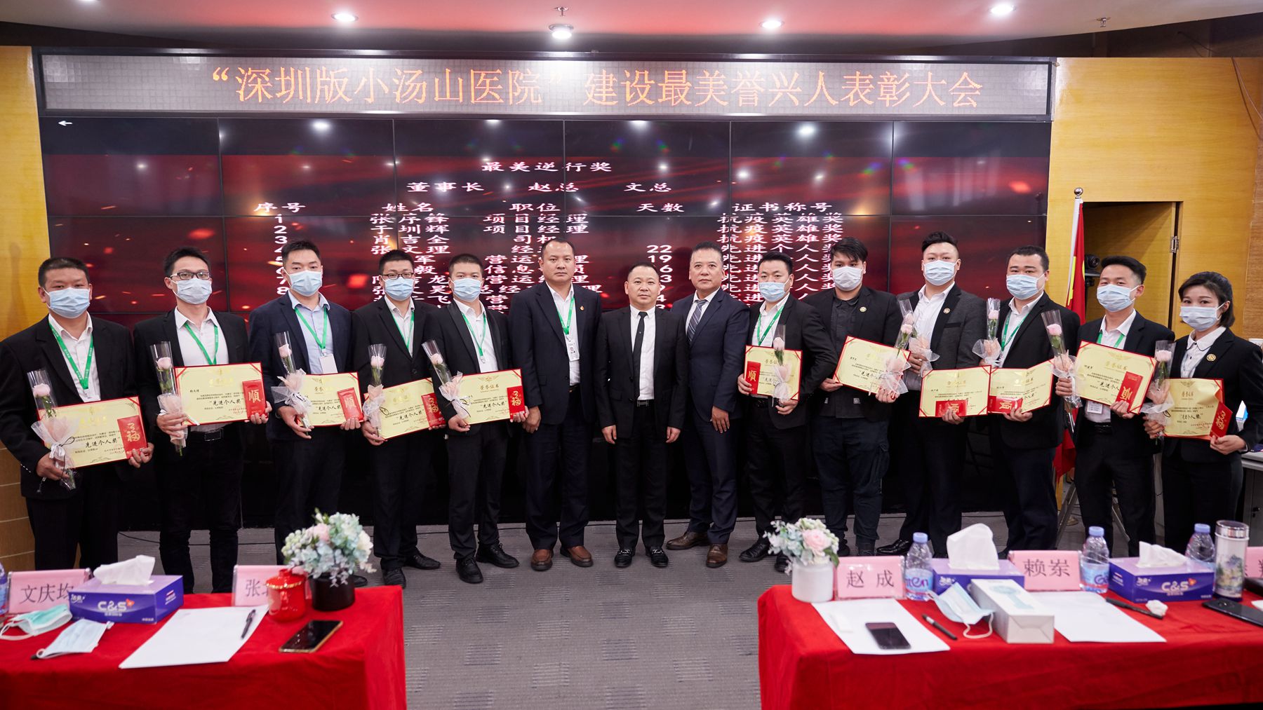 这些众多的声誉,,,,,,,,都离不开疫情时代奋战在一线的所有事情职员的辛勤支付,,,,,,,,为此特召开大会对体现突出的先进小我私家和优异尖兵举行了盛大表扬。。。。。。。集团董事长张北京亲自为这些抗疫英雄,,,,,,,,“最美逆行者”们揭晓声誉证书并献上慰问红包以示奖励。。。。。。。
